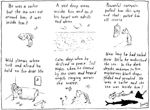 Una gran cantidad de las caricaturas de Leunig también representan la melancolía y la depresión - que puede ser atribuible al ascendente en cáncer y la empatía sentida por el dolor y la melancolía en la sociedad en general. En una entrevista de radio de ABC[13], los estados anfitriones, “Freud señala en su ensayo sobre el duelo y la melancolía que una persona deprimida puede ver en la verdad de las cosas de una manera que otros no pueden." Parte de la respuesta de Leunig dice así, "Mi trabajo es mirar a la sociedad y ver lo que está pasando. Me di cuenta de que hay mucha melancolía reprimida; oculta, gente avergonzada de ello.